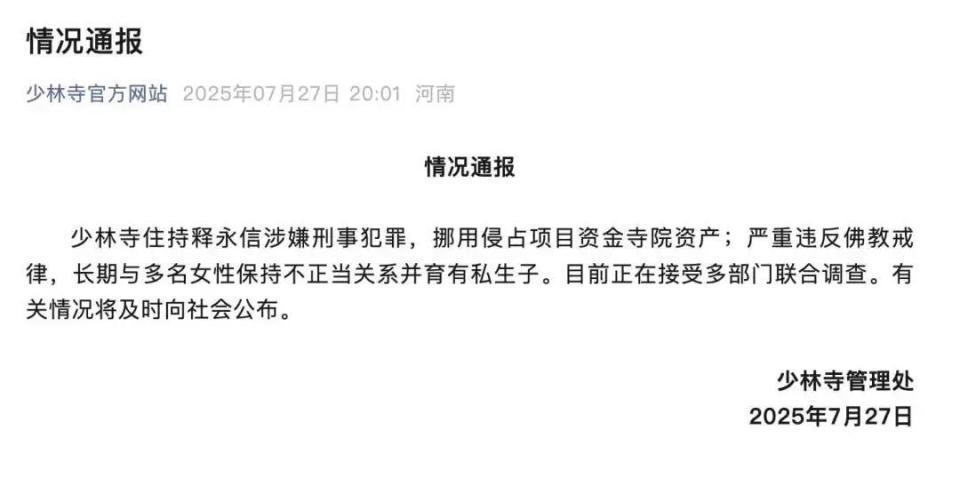 底下,得哥就系统性整理一下释永信的现状,全面意志这位令通盘少林蒙羞的罪东说念主。