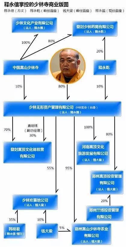 餐饮、释教用品、贸易地产,处处都有少林的影子,释永信也被戏称为 " 少林 CEO"。