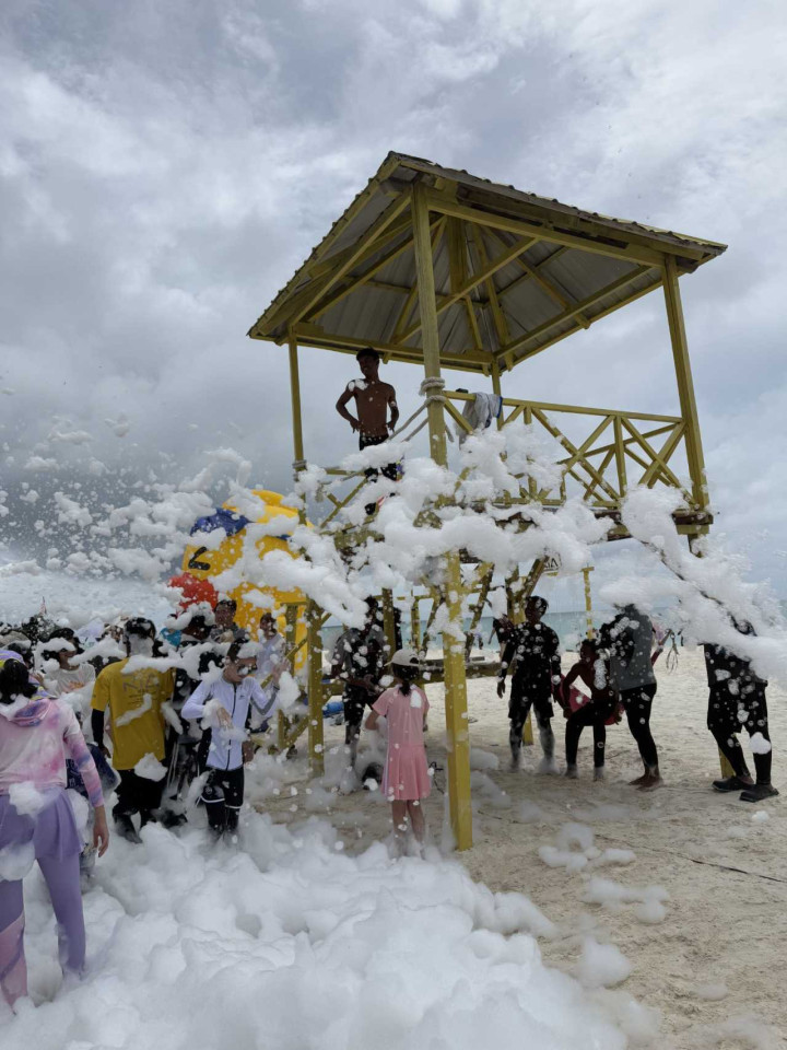 浮潜完就回到岸上用餐,大略少量钟的时候还有泡泡派对,可能因为远岛齐是条目有限的吧,这里不论是洗手间的智商,也曾中午的自助餐,齐是说来话长的,远岛一日游的价钱也贵,船程又久,要是唯有一天技巧海岛游的话,忽视也曾选近岛吧,没那么吃苦(可能是某书太多网红推选的原因,岛上齐是中国东说念主,嗅觉是被炒作起来的一个所在,可能浮潜看到的东西比近岛多一些吧)