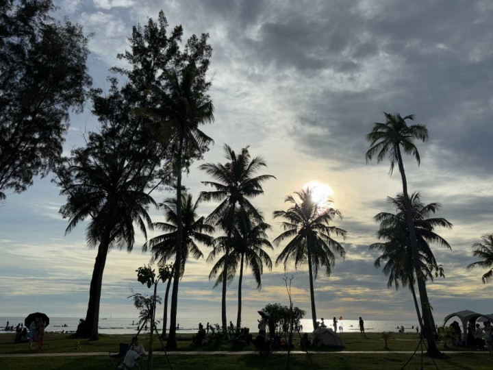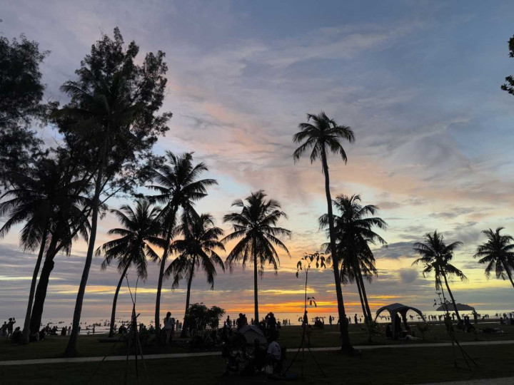 吃完东西也才不到五点,看着今天的天气很好,咱们一致决定再战丹绒亚路海滩,看能不成豪赌生效据说中的天下名次前十的日落,于是立马打车去海滩~到的时候差未几五点半的方式,太阳还挂在半空,臆度得等差未几一小时才会降到海面上,咱们就找了个所在坐下,渐渐恭候。。。海滩控制有几家酒吧,也有一大片草地和休憩的庭子,许多家庭齐会带上野餐垫和食品,一人人子在草地上静静地恭候日落时刻的莅临 便是这里的洗手间是收费的,1RM上一次。。。