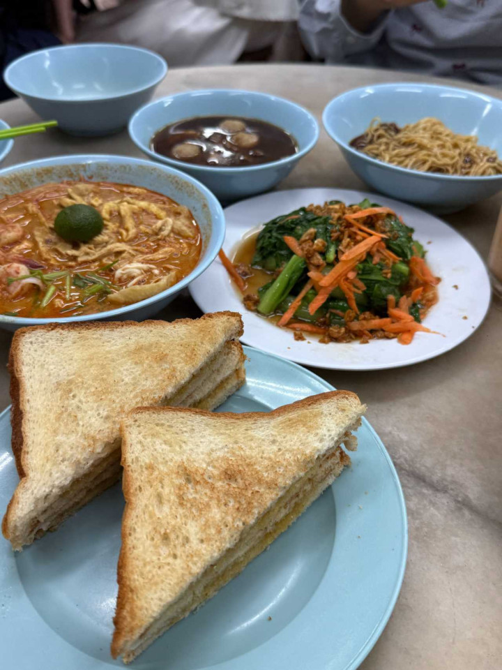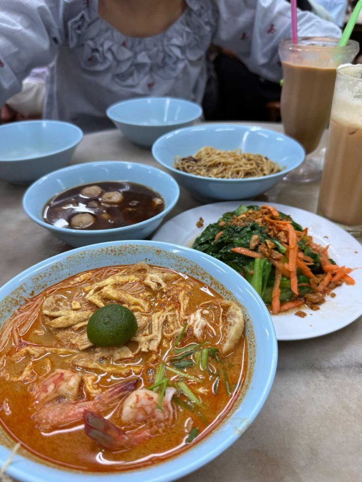 浅显两点就坐船回程了,三点半回到船埠,车会接送回栈房,回到后马上浅陋梳洗了一下,打车到许多攻略齐推选的怡丰叻沙,店里齐是韩国东说念主和中国东说念主,点了牛仔面,叻沙面还有黄油加央面包,嗅觉份量有点小,双色奶茶好喝,不会很甜。