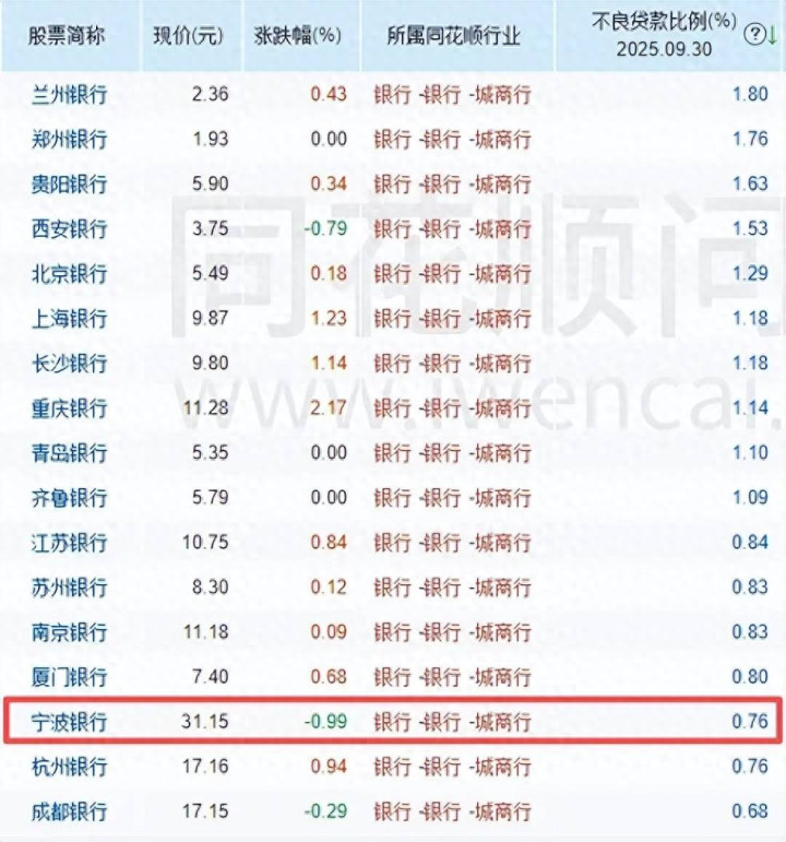 2025年前三季度,不良贷款进一步增多至129.95亿元,不良贷款率仍然为0.76%,在A股17家城商行中排在倒数第三,总体贷款质地踏实。