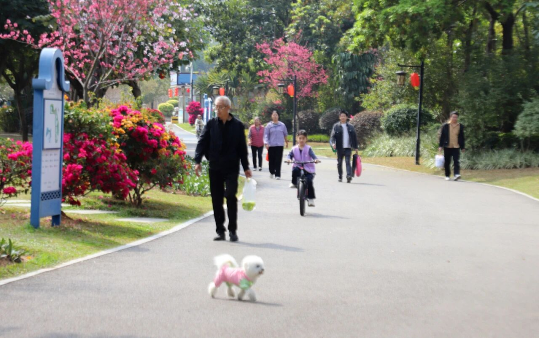 本年留莞过年的曹女士在花丛间拍照眷恋,她笑着说:“咱们有空就会来逛逛,空气好,晒太阳也心仪。年月朔还在谢岗广场干预了举止,过年的腻烦挺浓的。”