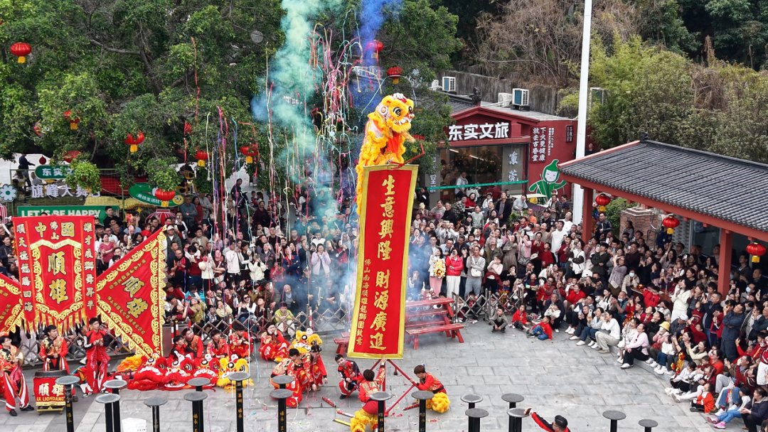 走进茶山南社古村,处处挂起了大红灯笼,现场锣饱读喧天。古戏台上,醒狮随饱读点腾踊翻转,遒劲灵动、阵容英武,引得全场喝彩不时。来自内蒙古的搭客刘女士清脆地说:“第一次来南边过年,最期待醒狮扮演,现场看太涟漪了!”