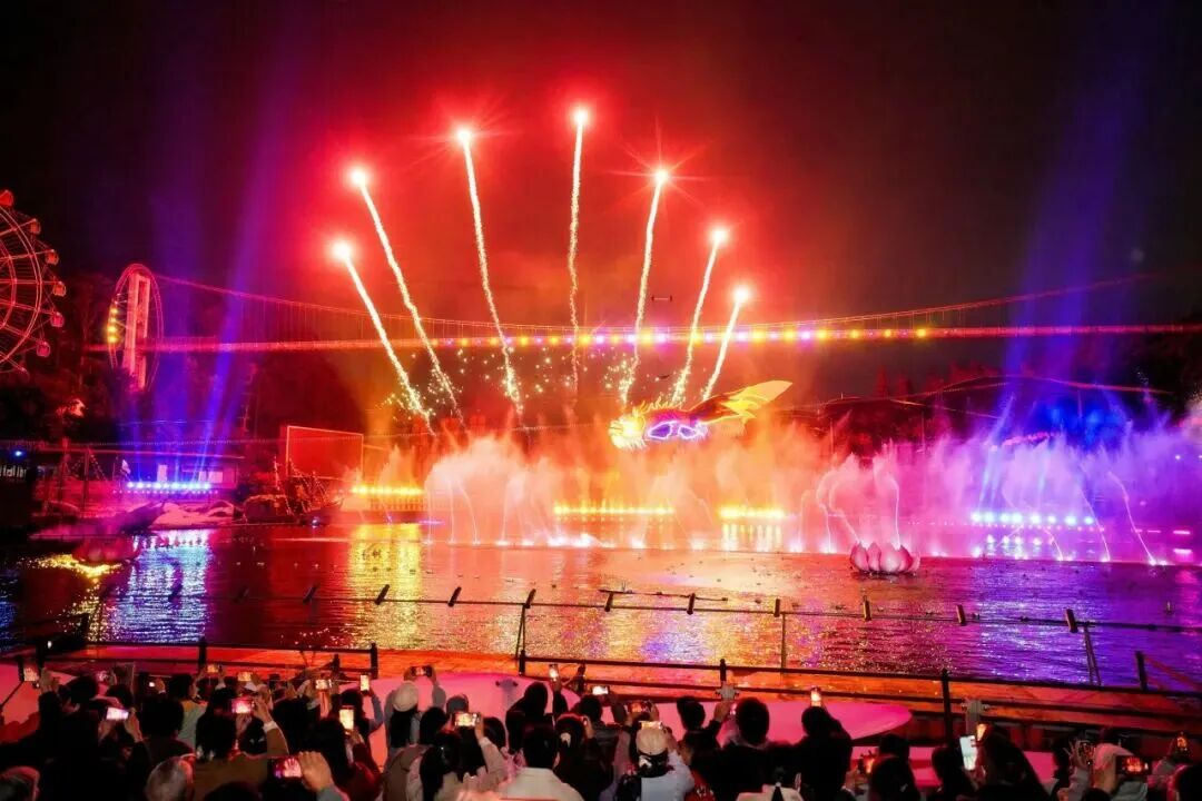 算作热点打卡地的东莞隐贤山庄张灯结彩、东说念主流如织,欢声笑语不时。为丰富搭客新春游玩体验,景区推出“来隐贤过大年·非遗花火闹新春”主题举止,舞龙扮演、火壶身手、无东说念主机光影秀、烟花扮演、新春音乐会等节目按序上演,相称吵杂。