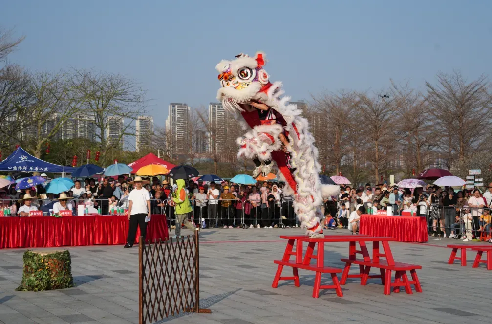 在砚阳湖景区举行的鼎湖区(肇庆新区)第二届醒狮公开赛,星空体育为市民搭客献上一场年味统统的非遗盛宴。