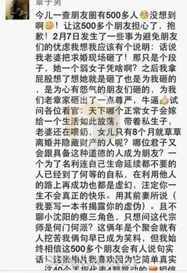 章子怡的哥哥章子男以致把他们的求婚现场给砸了,成果就演造成两家东说念主吵架干架,现场乱成一派。